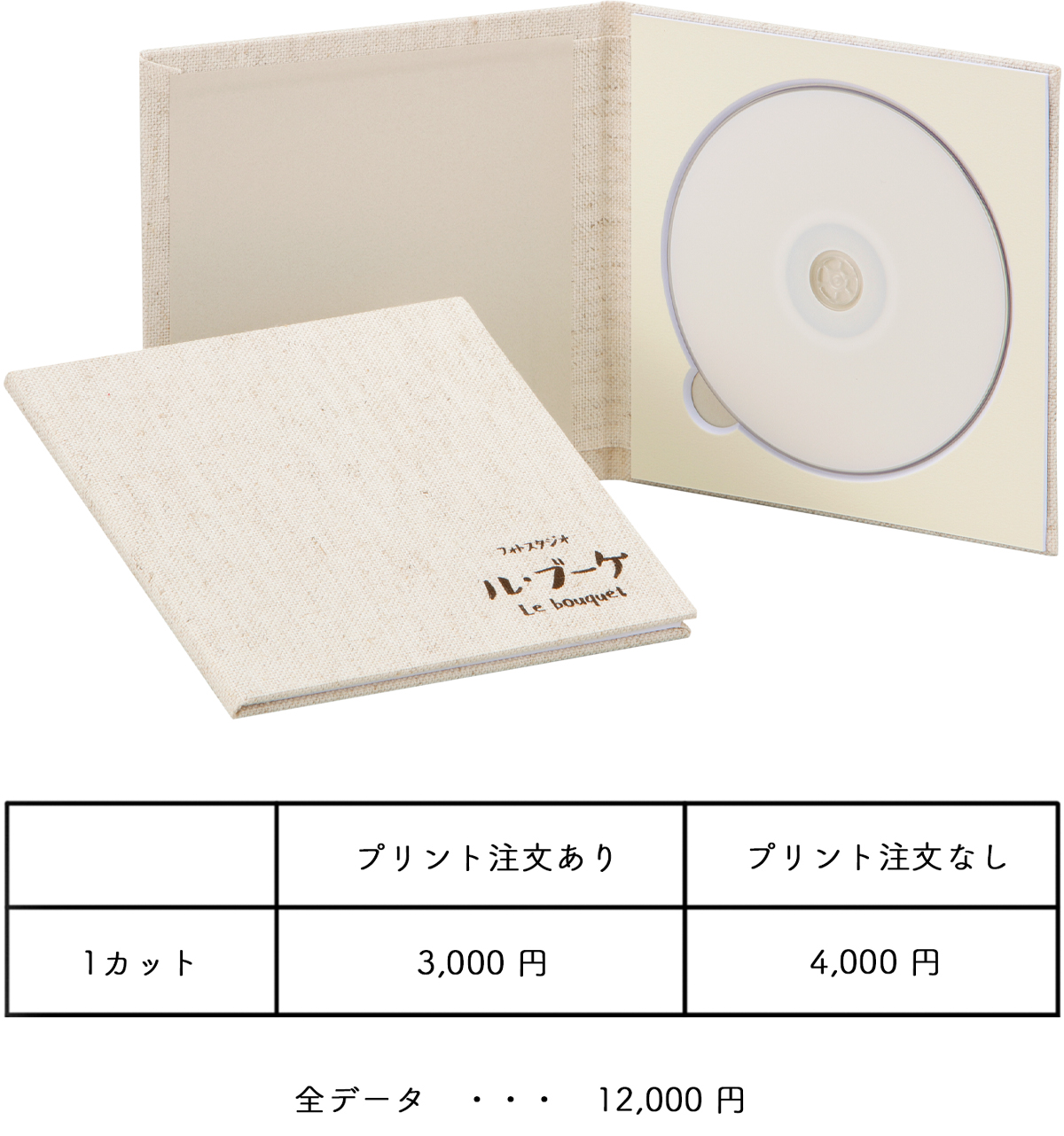 麻布の素材で仕立て上げました温もりのあるル・ブーケオリジナル台紙と、