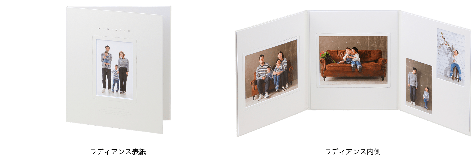 高級感ある白地の台紙ラディアンスをご用意しております