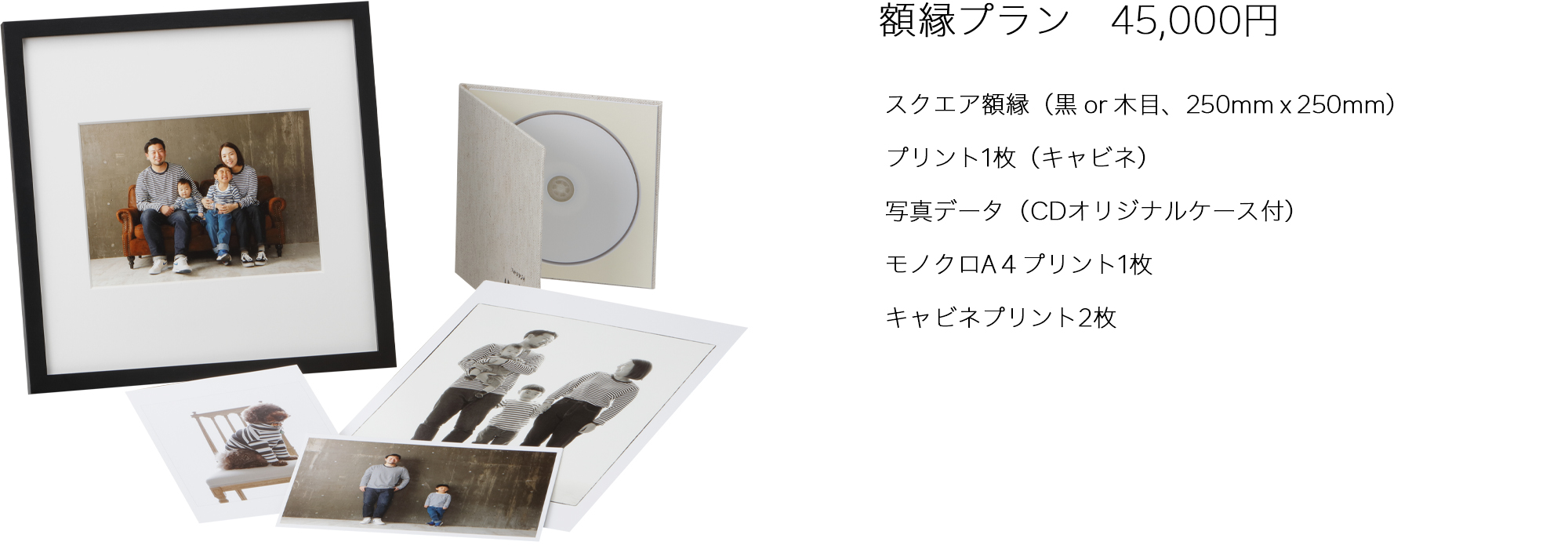 セットメニューに個別の商品(台紙、プリント、ヘアメイクなど)もお付けすることができます